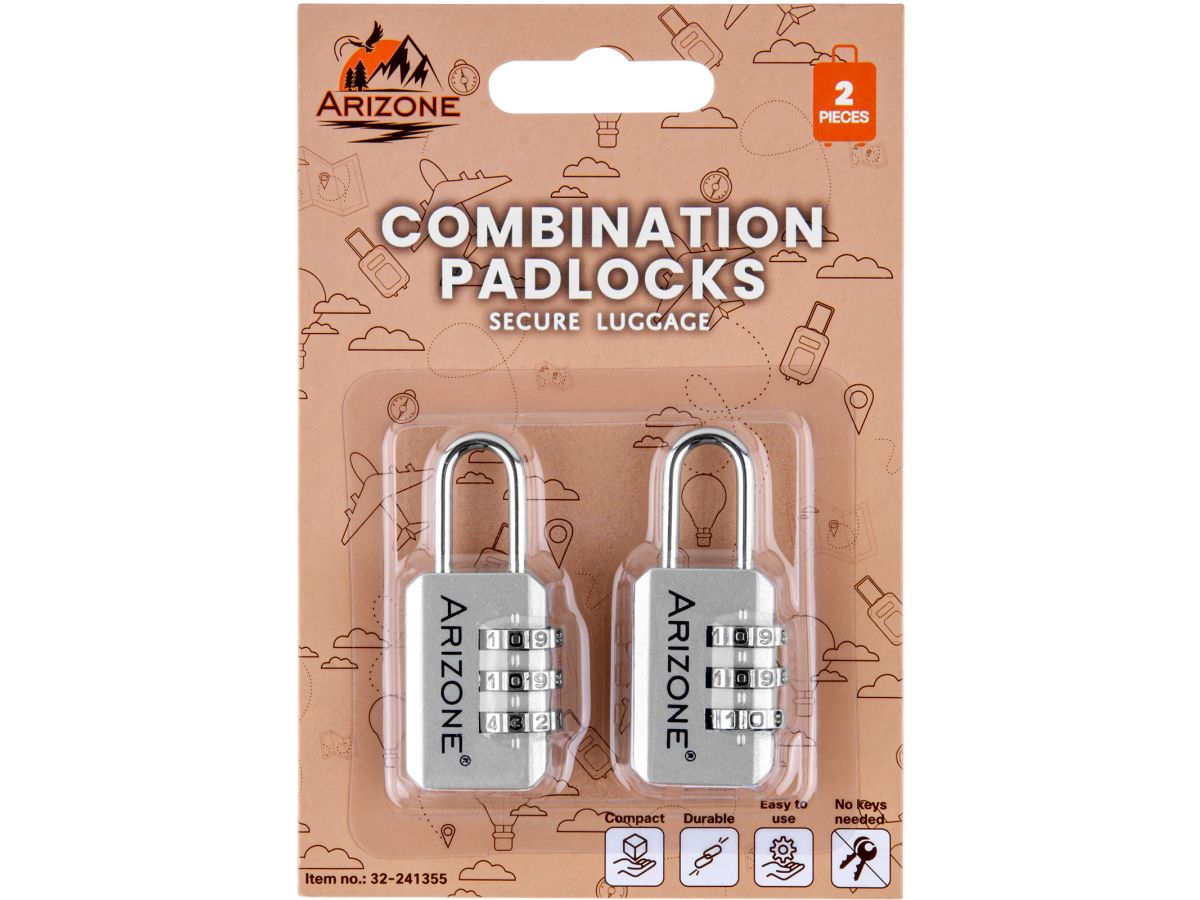 Замок навесной кодовый ARIZONE серебро 2 штуки (32-241355) станет вашим надежным помощником в путешествиях и обеспечит безопасность багажа в любой ситуации. Замок имеет кодовый механизм с комбинацией из 3 цифр. Багажный замок можно использовать не только для запирания чемоданов и дорожных сумок, а также для закрытия небольших ящиков и шкафов. Благодаря навесному замку ваше имущество будет под защитой.