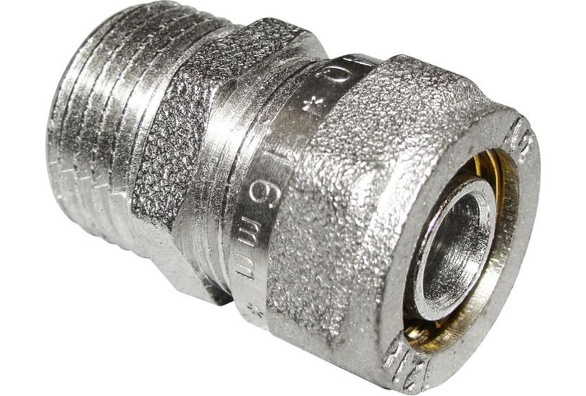 Фитинг прямой обжимной с переходом на наруж. резьбу никелир.латунь 20х1/2″М
