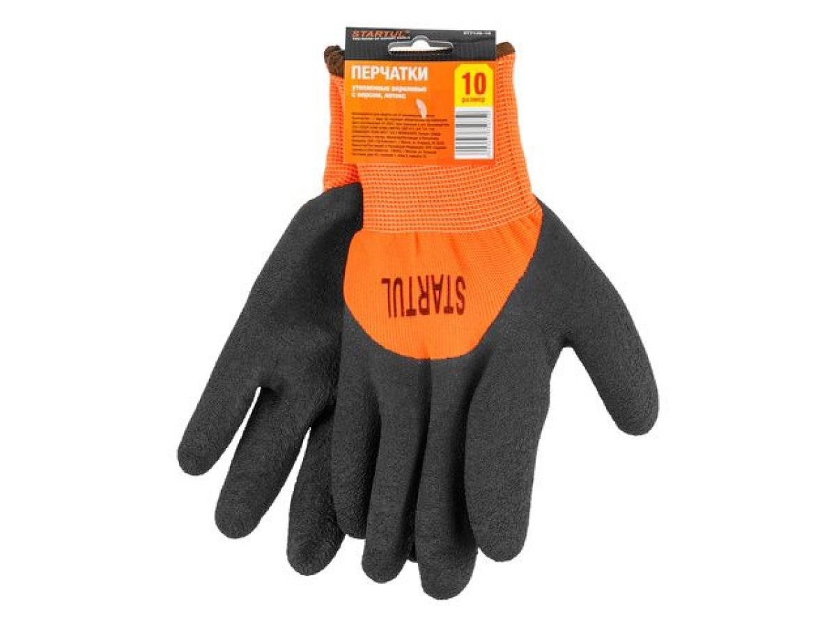 Перчатки утепленные акриловые с ворсом, латексное рельефное покрытие, 10 р-р STARTUL