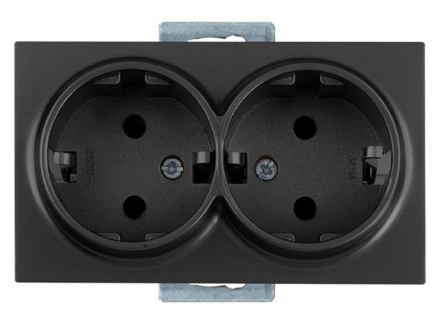 Розетка 2-ая (скрытая, б/з) черная, DARIA, MUTLUSAN