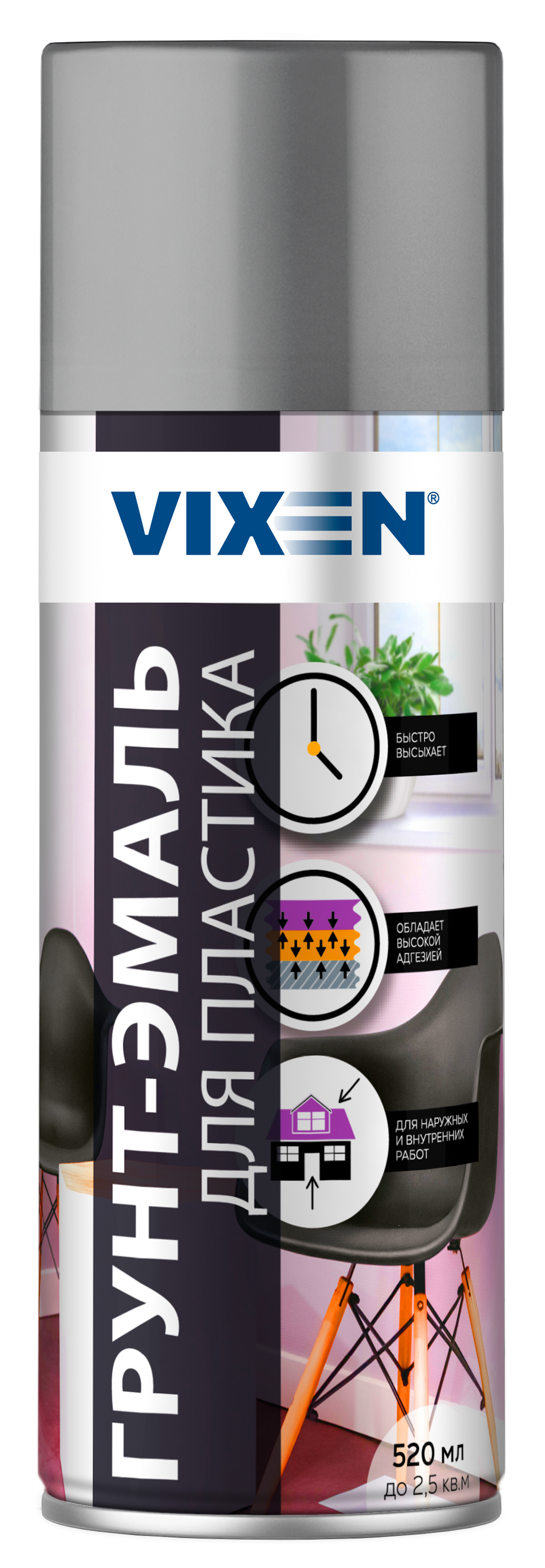 VX50102 VIXEN Грунт-эмаль для пластика, серый матовый (RAL 7040), аэрозоль 520 мл.