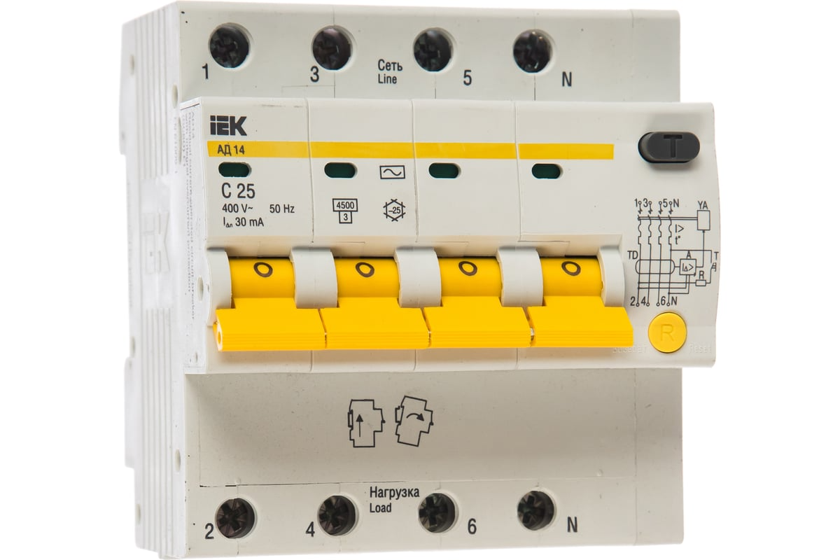Диф. Автомат АД14 3P+N, 25А, 30мА, тип AC, 4,5кА IEK